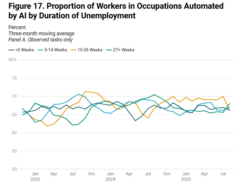 - High AI-exposure jobs—law, finance, customer service—showed no displacement in federal data.