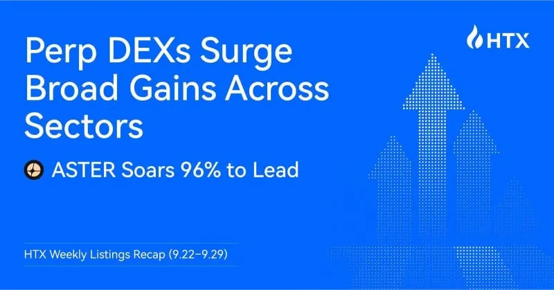 HTX has released its weekly market performance report for the period of September 22 to 29, highlighting a strong market recovery across multiple sectors. According to data from HTX and Dexu AI, Perpetual DEXs (Perp DEXs) emerged as the most notable growth segment, with a tenfold increase in sector mindshare during September. The broader market saw gains across DEX, DeFi, AI, and public blockchain sectors, with several newly listed tokens experiencing rapid price movements. ASTER led individual token performance with a 96% weekly increase.