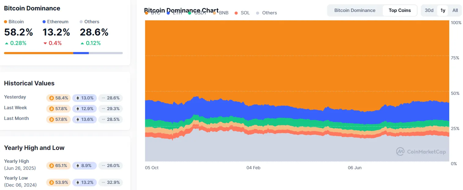 One revealing aspect of this rally is its distribution. Bitcoin dominance—its share of total crypto market cap—has been climbing, recently pushing above 58%. In other words, the rally is being led by Bitcoin rather than altcoins, which typically indicates institutional rather than retail participation. Institutions overwhelmingly prefer Bitcoin's liquidity and regulatory clarity over smaller tokens—even if that is beginning to change.