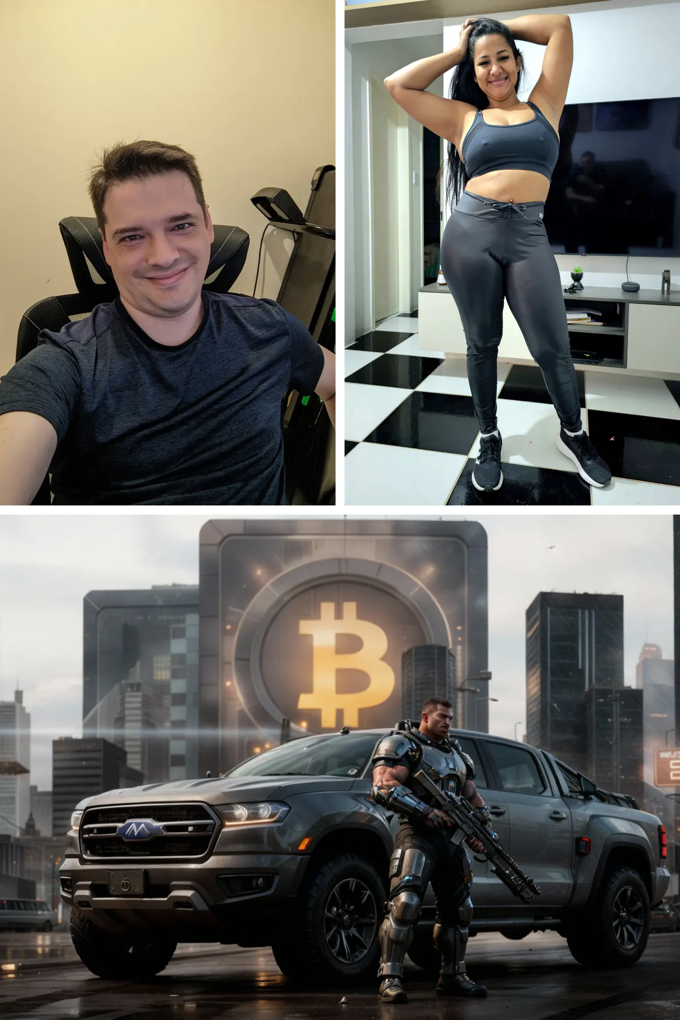 For example, the video below was generated using these three references and the prompt: a man and a woman stumble upon each other while running in a futuristic city, where a Bitcoin sign hologram is rotating. The man tells the woman, "QUICK, BITCOIN CRASHED! WE MUST BUY MORE!!