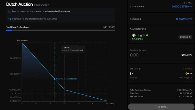 If a user purchases 100,000 River Pts at $1 and the final clearing price is $0.5, they will receive 100,000 River Pts and a refund of $50,000 in BNB after the auction ends.